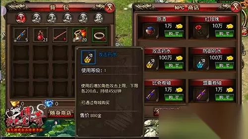 如果你碰到一位仁兄,前一秒战五渣,下一秒战力爆表,那么请你千万要淡定,他只是嗑了一种名为“攻击药水”的秘药。攻击药水顾名思义就是一定时间内提升战斗力的药水,在杂货铺有卖,可以持续提升你的攻击上限、下限,药效长达45分钟。