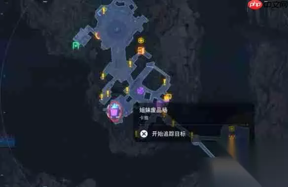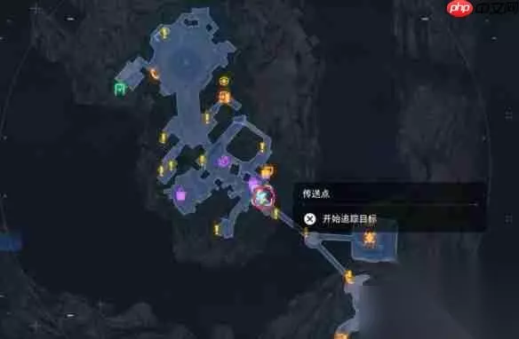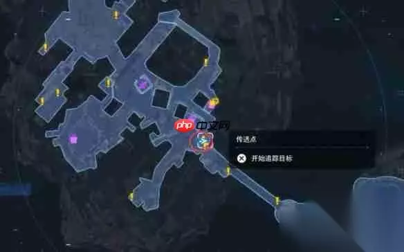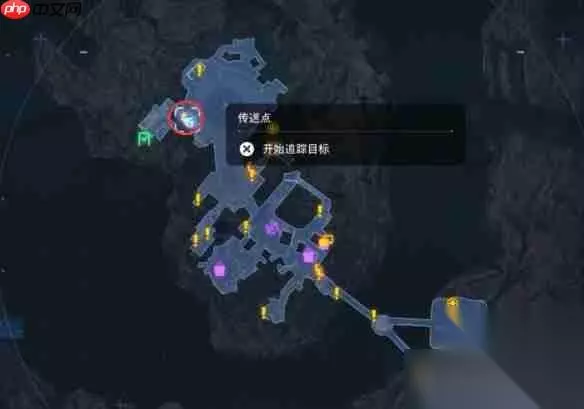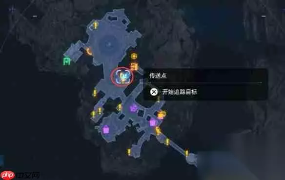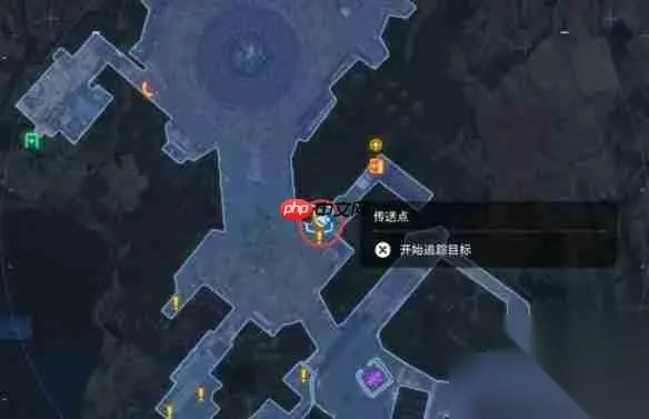 1、抵达图中标注的传送点,从右侧楼梯向下走两次即可到达目标地点; 2、抬头观察,猫咪位于上方位置。 位置二:
