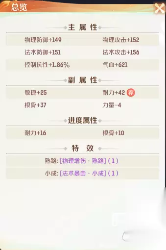 8.心法: 属性拉开差距的地方、欧皇和非酋在这里体现得淋漓尽致! 大佬追求特效+双加属性、一般玩家优先追求双加属性 心法主属性:以物理防御、法术防御、控制抗性为主 心法副属性:以根骨、耐力、敏捷(负敏不要)为主 心法特效:以治疗暴击、减伤为主 心法加成:根骨、耐力、敏捷按需选择就行!