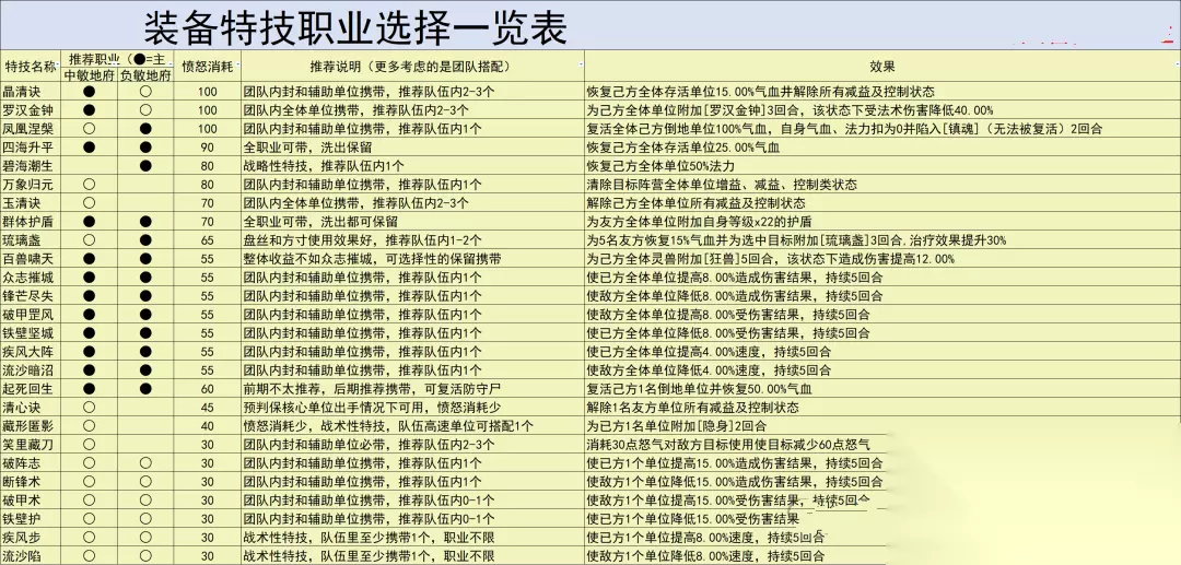 7.装备特技推荐: 地府打造装备时,以特技为主,属性和特效不是很完美的话,是可以忍一忍的! 地府的特技佩戴和速度有关系,有的特技不是很适合负敏佩戴~ 推荐的不一定是一定要全拥有,根据自己打装备和队伍其他人的情况,选择性保留使用