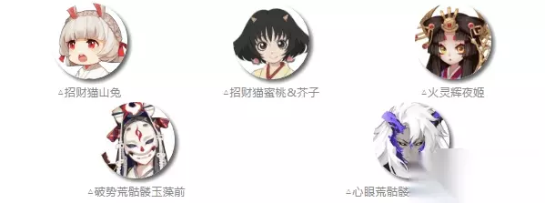 ②鬼切(狰)、犬神、日和坊、樱花妖、椒图(招财猫)