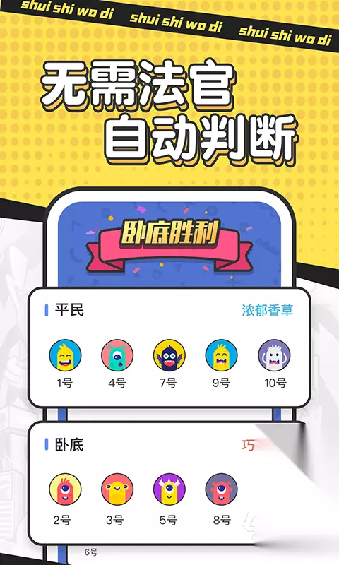 主打极简操作与轻节奏闯关体验,适配办公室碎片化时间。玩家通过触控调节弹球发射角度与力度,精准撞击场景中分布的钉子结构;达成连续命中可激活暴击状态,使单次伤害翻倍。关卡中嵌入动态怪物系统,如蝙蝠等形态会随进度变化出现,增加策略预判维度,兼顾休闲性与微挑战性。 高速下载 普通下载 优先233乐园APP下载 3、《谁是卧底》