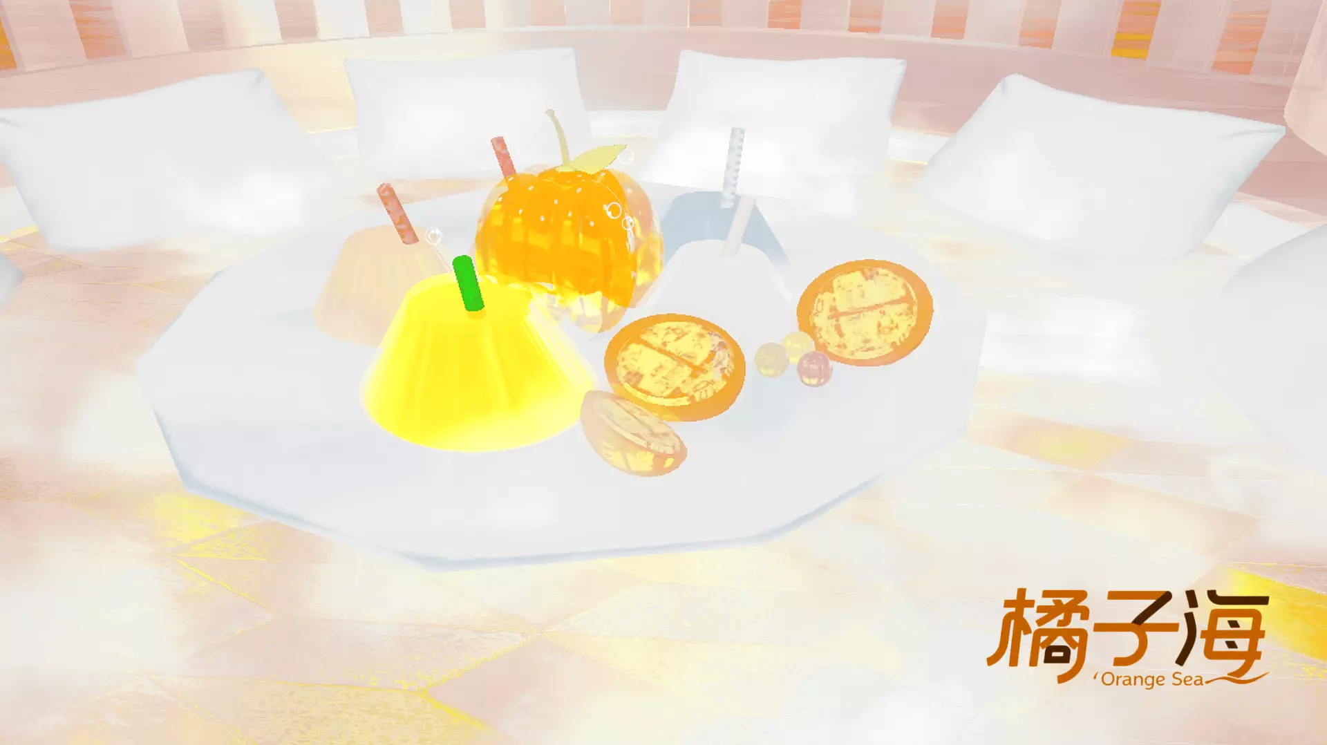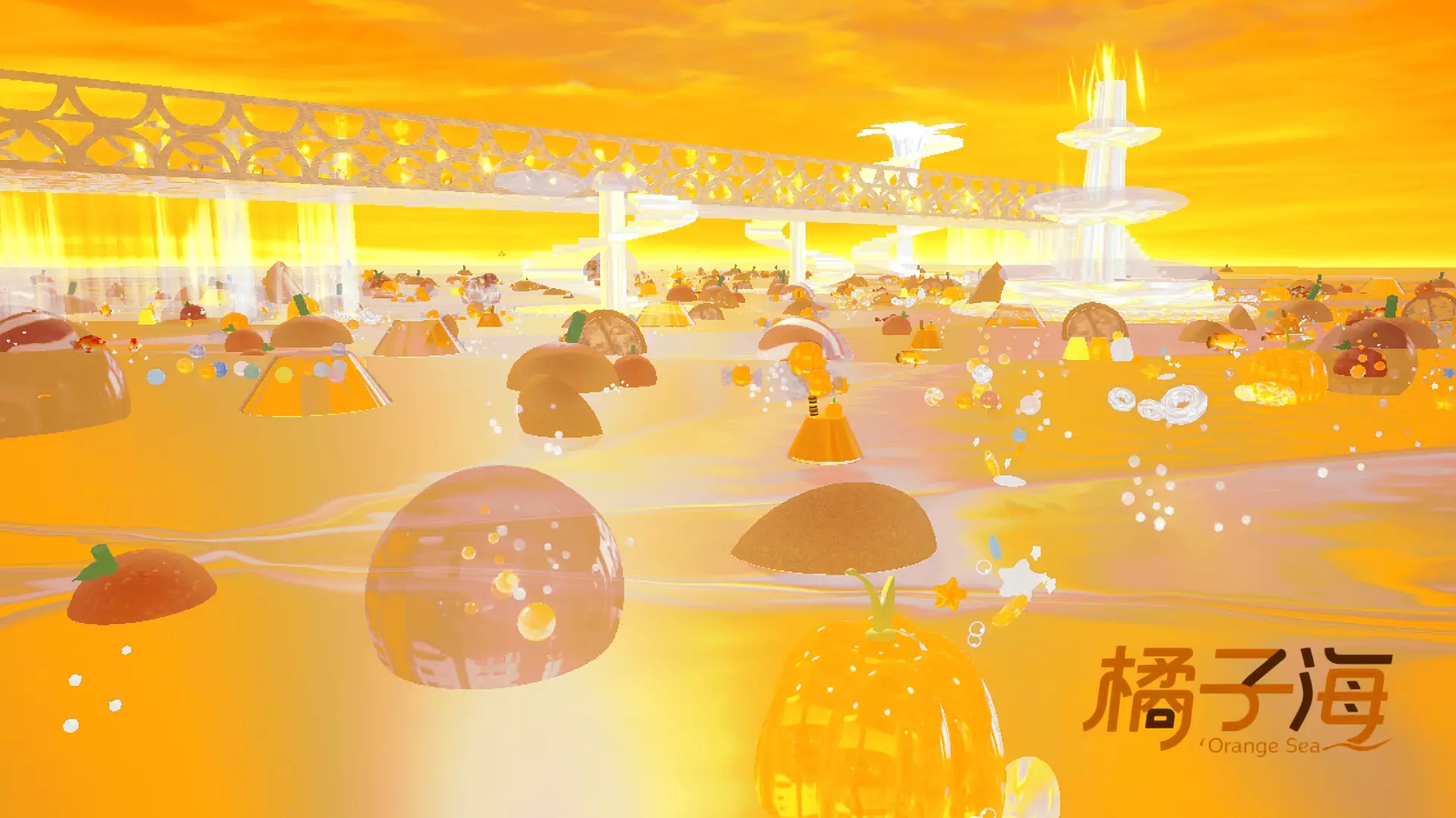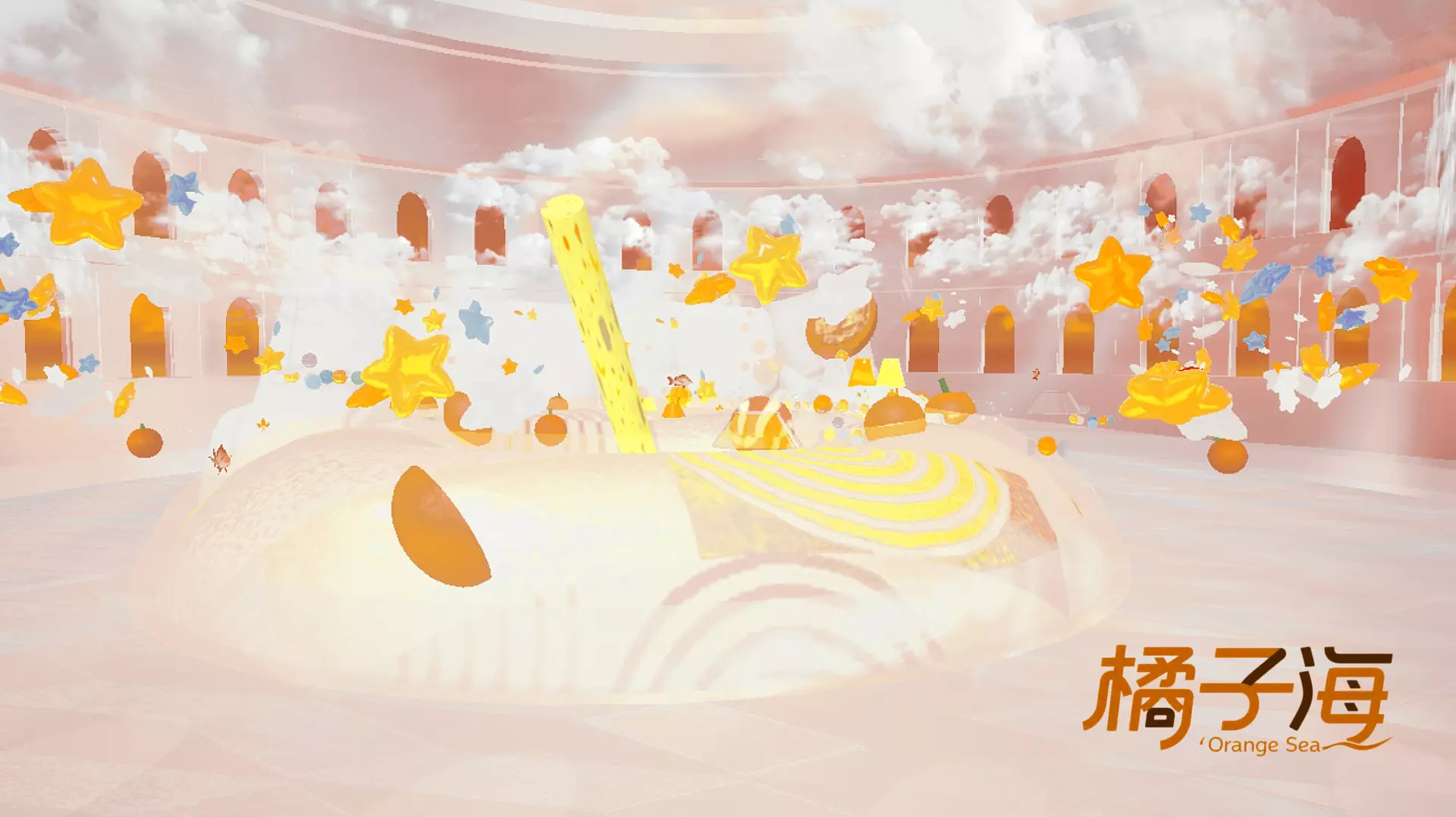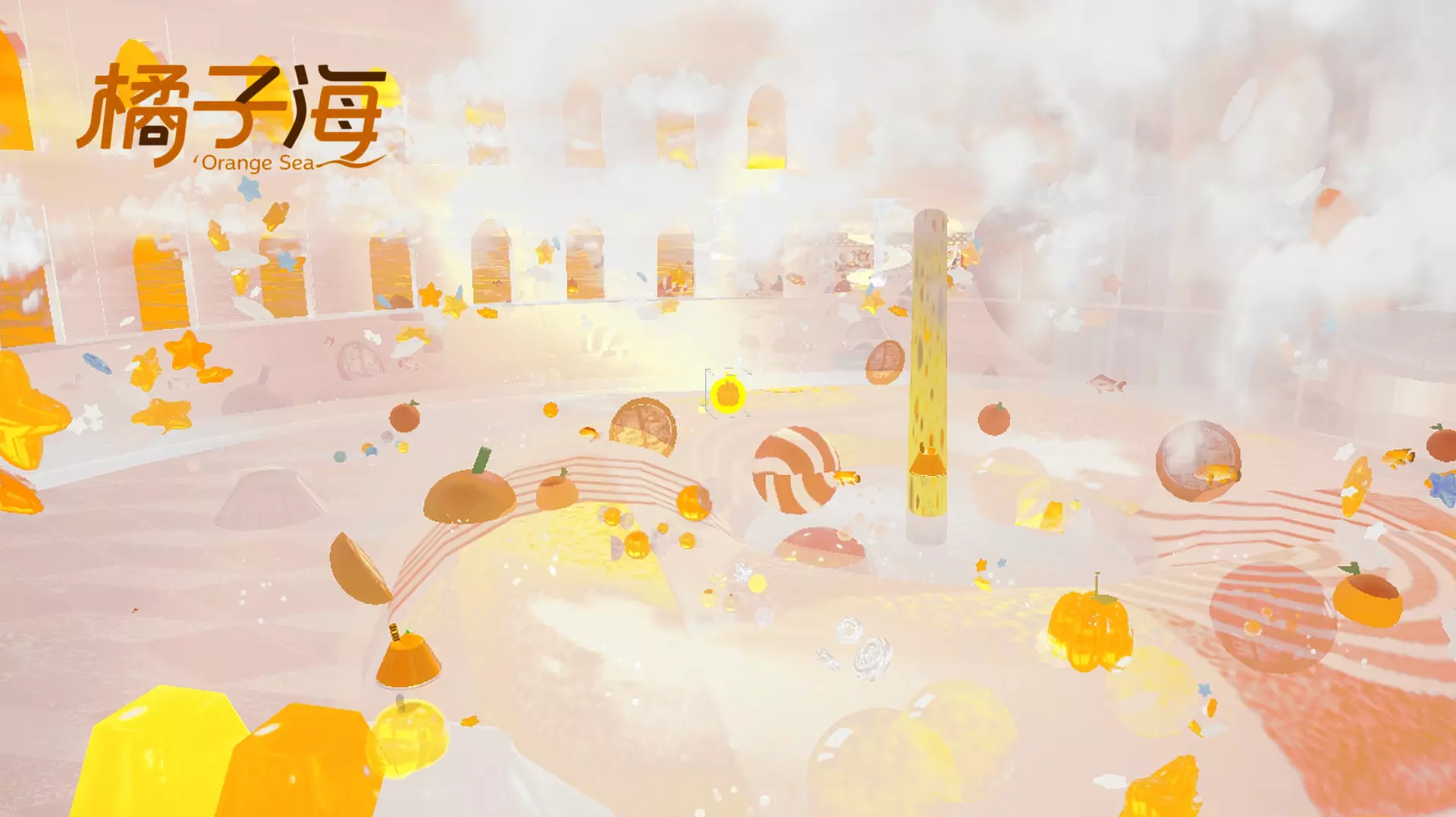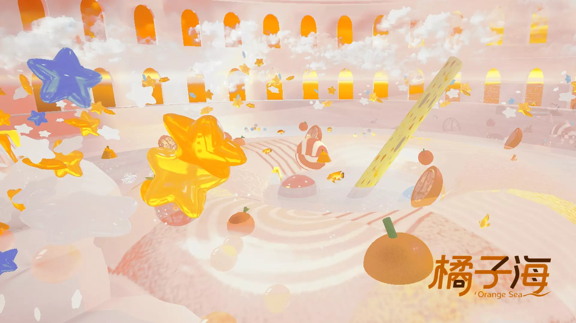 还有橙子切片模样的装饰悬浮其中,