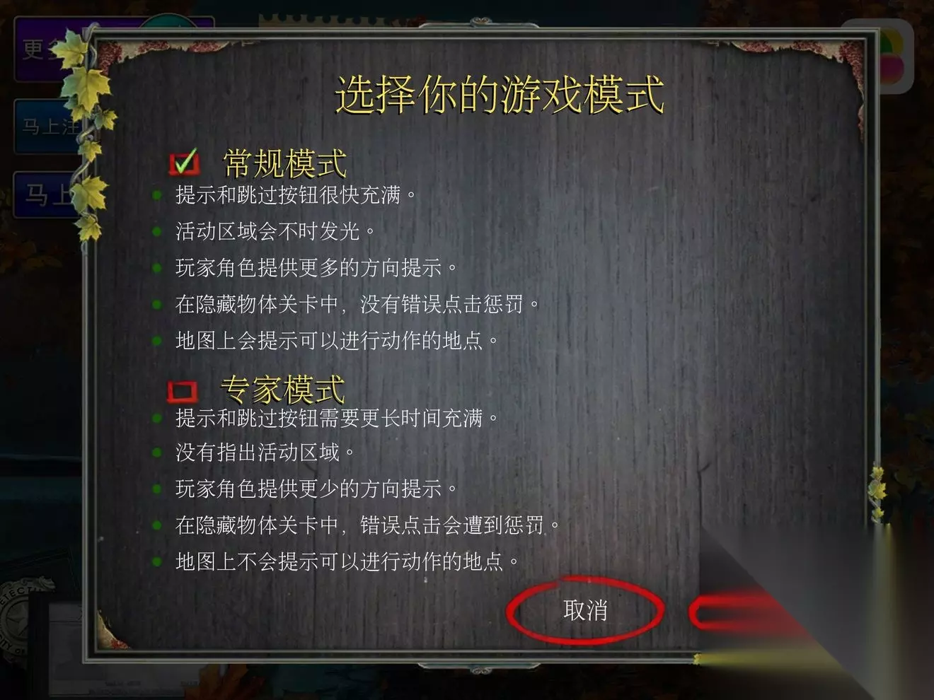 游戏有两种难度可以选择,如果是解密老玩家建议选择专家模式,会让这个游戏更有趣味性。