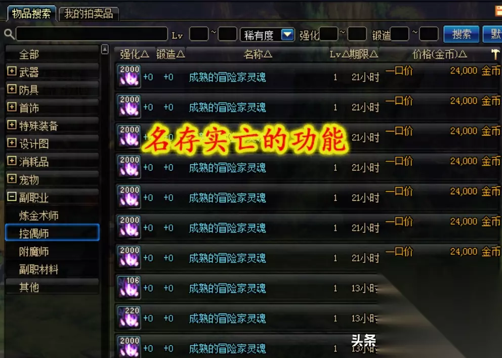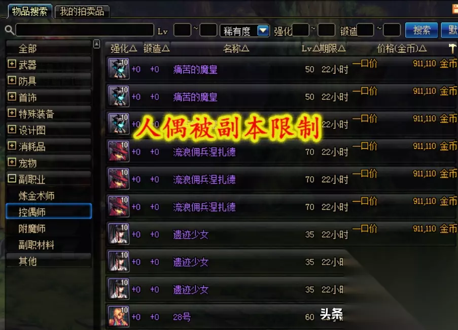 第一个是分解师了,要不是地图旁边的分解机无法分解红字装备的话,相信玩家都不需要角色学习“分解师”这个副职业了。第二个是控偶师,做出来的人偶被策划的特色限制了,团本不需要白图用不上,28号和GSD这些曾经带大家升级的人偶现在都太弱了,所以人偶师也几乎无用。 第三个附魔师,这个有用但没必要!以前还能靠摆摊几十万附魔一次,而现在玩家都是从拍卖行直接买成品宝珠,附魔师存在感不高了,靠附魔搬砖太困难。第四个炼金术师是存在略高的,主要是异界提前金色~制作药剂的话,漩涡普雷都不可使用,而鸟背组队的话也不需要。综上4个副职业基本名存实亡了。