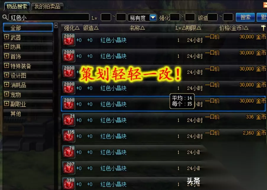 但策划只要轻轻一改,玩家就能赚几亿金币! 副职业是DNF里一个很重要的功能,90级存在感还是很高,只不过到了95各种限制就名存实亡了,策划只要轻轻一改版,副职业又可以为玩家贡献大量金币 比如分解机被取代就是因为装备丢商店更划算,如果策划把玩家的分解机和系统分解机拉开较多晶体数量的话,或者让有色晶体价值暴涨,那么这个分解师就会有很多玩家转。