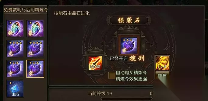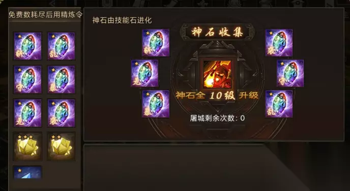 每颗技能石需通过四次精炼,每次需将相邻技能孔洗练至5级并与主技能相同,最终使技能等级达到60级。6颗技能石均满60级后,可通过点券兑换神石卷轴完成进化。此过程需消耗大量点券与时间,建议提前储备资源并参与点券获取活动。神石的精炼属性远超普通技能石,尤其在暴击、斩杀、无双等关键属性上具有显著优势,对后期PVP和副本挑战至关重要。