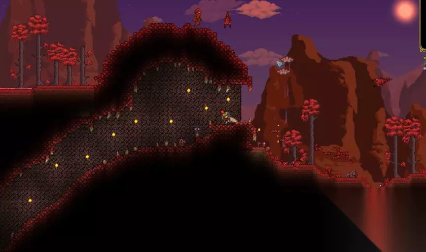 找到猩红祭坛,第一步得确保咱们玩的是猩红世界。创建世界时系统会随机生成猩红或腐化地形,只有猩红世界里才会出现猩红祭坛。确认后,咱们直接进入游戏里的猩红之地(也叫血地),这片区域通常地面是暗红色的,布满扭曲的血管状物和尖刺。到达猩红之地后,咱们的目标是往地下深处探索,具体来说就是找到洞穴层。洞穴层位于地下,深度大约在零高度(地表)到地幔层之间,环境光线变暗,背景出现大量石墙结构,这时候就要睁大眼睛仔细搜寻了。