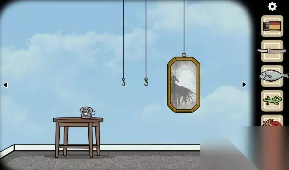 纸条上记录着时间,以及一个迷题。我们需要知道虫子、心脏、壁虎、鱼分别代表的数字。暂时得到的信息是砝码代表1。 第三个抽屉里的记录本上记录着这样的信息: 夜幕中的月亮大的出奇, 猫头鹰瞥向右方,张开双翼。 然后他又看向我说到: 不要忘记你的初衷,它看向左侧 说到:你需要变身,变身他物 他又看向我,盯着我的双眼补充道: 在日出之时。 之后它将脑袋转到身后飞走了” 注意画线加粗的信息,之后有用 第四格抽屉里,我们找到了砝码。 来到镜子这边,天上的飘来四片云彩。移动云彩到特定位置,云彩会变幻形状。移动四片云彩,让他们分别展现心脏、壁虎、虫子、咸鱼这四种形态,四片云彩会消失。出现另一片云彩。