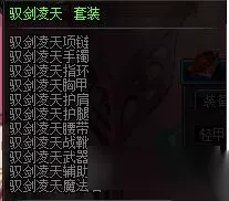 俗称魔掌9,这也是目前主流之一的异界套,通过魔之短剑精通的提升,来高频率触发魔剑奥义,打出高额伤害,并且这套装备可以打任何位置,只需要一个好的武器就行了,当然短精白金也是必不可少的,没有的等活动吧,伤害也不会低到哪去。强力推荐。 驭剑凌天: