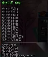 6件套可以放两个瞬影斩,但是还是没有魔掌套跟远古套厉害,喜欢瞬影斩的可以选择。9件套的属性恶即斩太墨迹了,跟剑魂的裂缝套差不多,但是我们又没有雷剑这种装备,所以直接忽略。 魔剑之源: