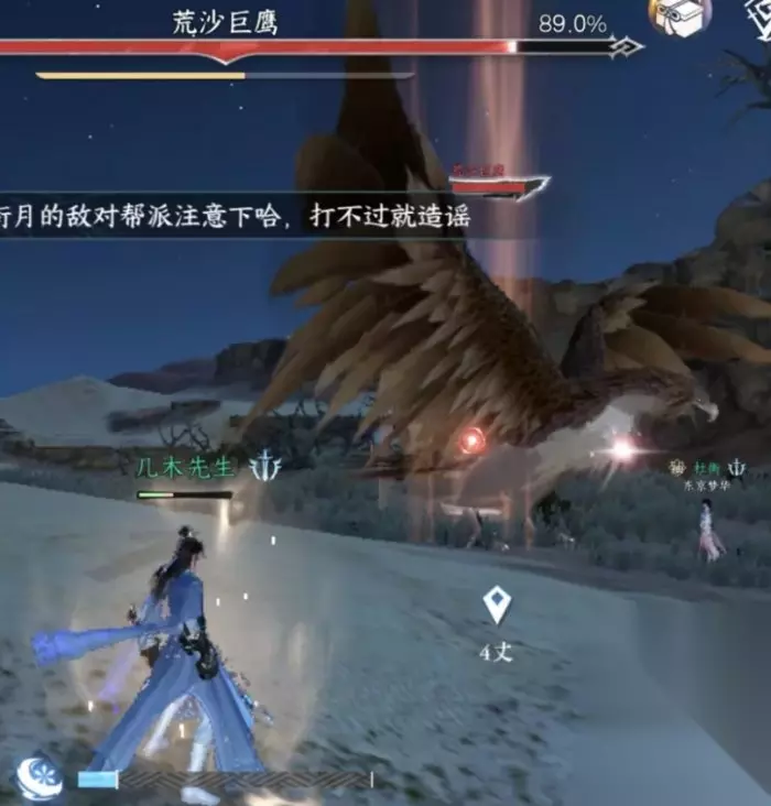 坐标:桃溪村(1065,1214) 掉落物品:百家技金钟不坏/天外陨铁 BOSS四:云崖巨鹰