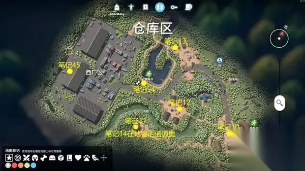 《逃离鸭科夫》中笔记是比较独特的收集品,会告诉玩家们不少游戏的背景设定,想要获取全部笔记的玩家请看下面“无恶不乐”带来的《逃离鸭科夫》笔记全收集攻略,希望能够帮助大家。 位置总览 大地图上的点位是大概的范围,准确的位置请搜索查看具体笔记,角色的位置就是准确的位置;没有标记在大地图上的,直接搜索具体笔记即可。 零号区 8份,笔记4.笔记5.笔记6.笔记7.笔记8.笔记9.笔记52.笔记53