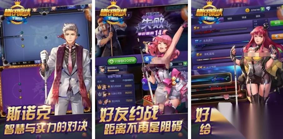 腾讯桌球是一个可以模拟现实桌球对抗的游戏,不同的是整个游戏的呈现更偏向卡通画风,玩家将会扮演成大量的卡通角色,在游戏里开启台球对抗,每次对战除了玩家个人的能力之外,球杆也会有相应的加成作用,可以不断在游戏里进行挑战,让自己积累足够多的资源,接着就可以用这些资源兑换球杆,可以拥有更强的对战能力。 高速下载 普通下载 优先233乐园APP下载 10、《台球锦标赛》