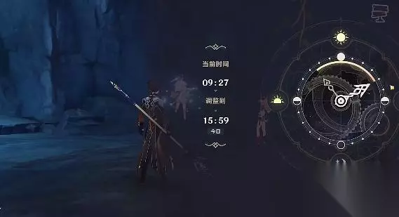 2、根据任务要求等待翌日,通过派蒙调整游戏时间到第二天,需要转两圈。