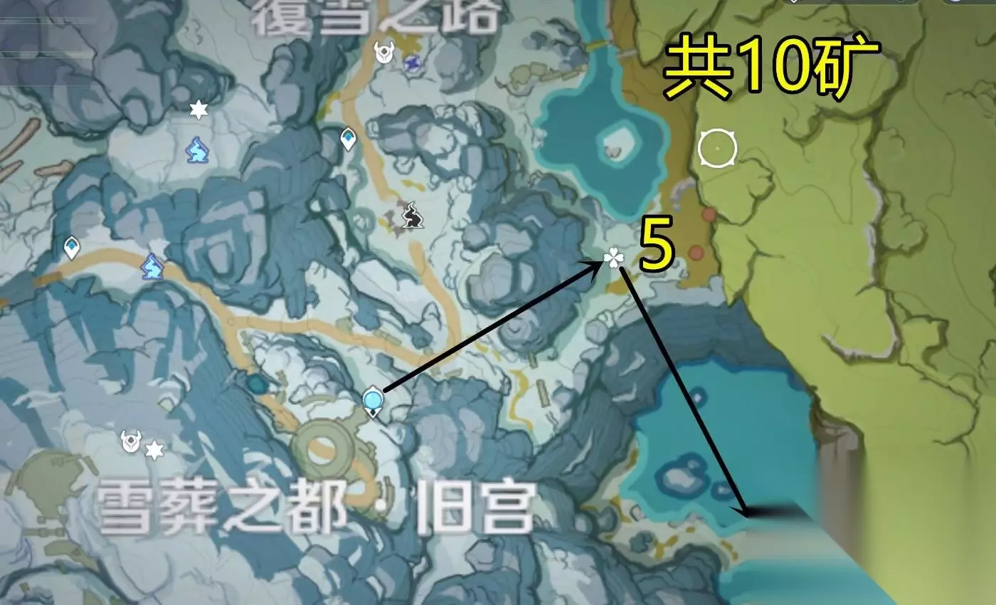 2、雪葬之都老王宫右侧有十个矿石;