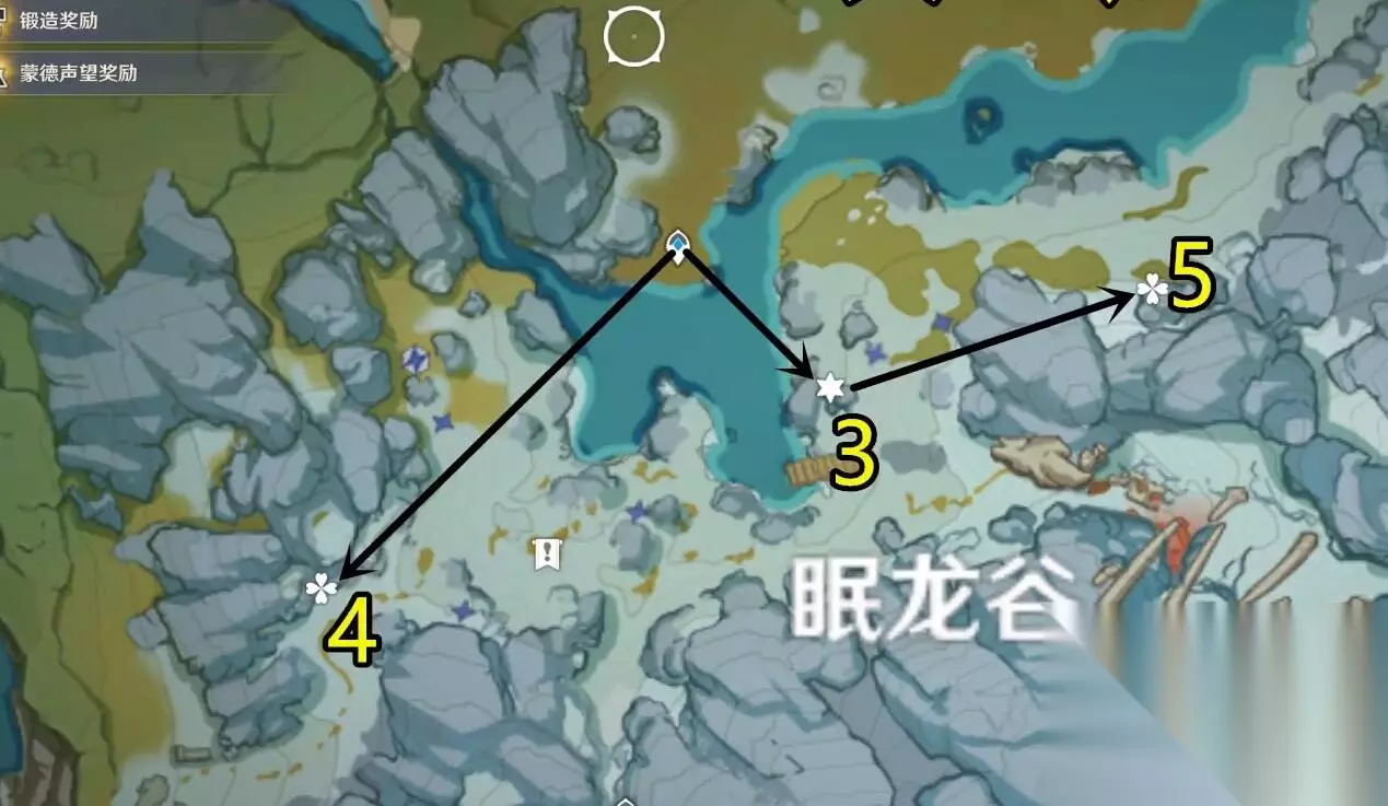 星银矿石采集路线: 1、第一个采集地点绵龙谷附近;