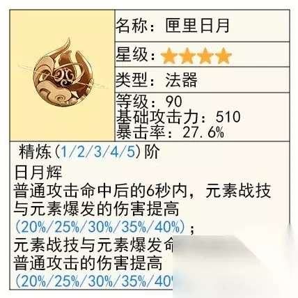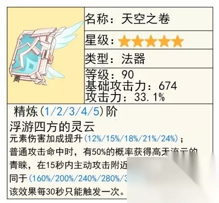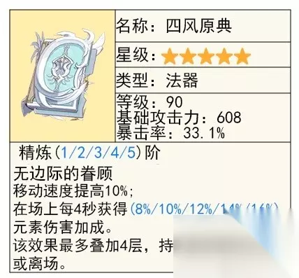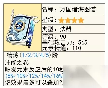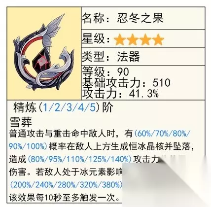 雪山法器,搭配冰套走永冻有不错的效果,而且特效伤害技能能吃满,加上自己的大招奶量刚好也是吃攻击力的,属性不割裂,是四星毕业武器之一。