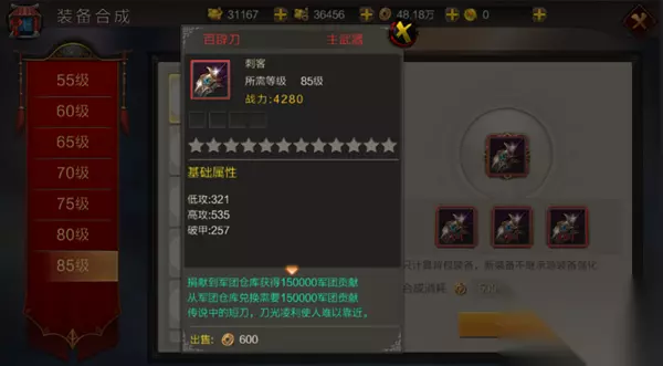 例如:85级百辟刀需要消耗3个无影刺才能合成呦!