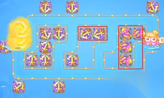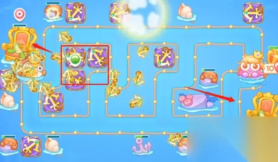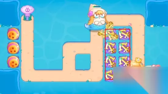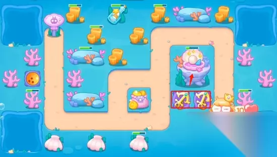 保卫萝卜4海的闺女第8关图文攻略,《保卫萝卜4》精彩续作,海的闺女章节带你遨游奇幻海底,构建最强防线,与时间赛跑,为你分享保卫萝卜4海的闺女8金萝卜道具全清过关技巧,体验策略与趣味并存的塔防闯关! 1、场景一开局我们在终点这里放置两个船锚,一边清理怪物一边清理周边的道具。
