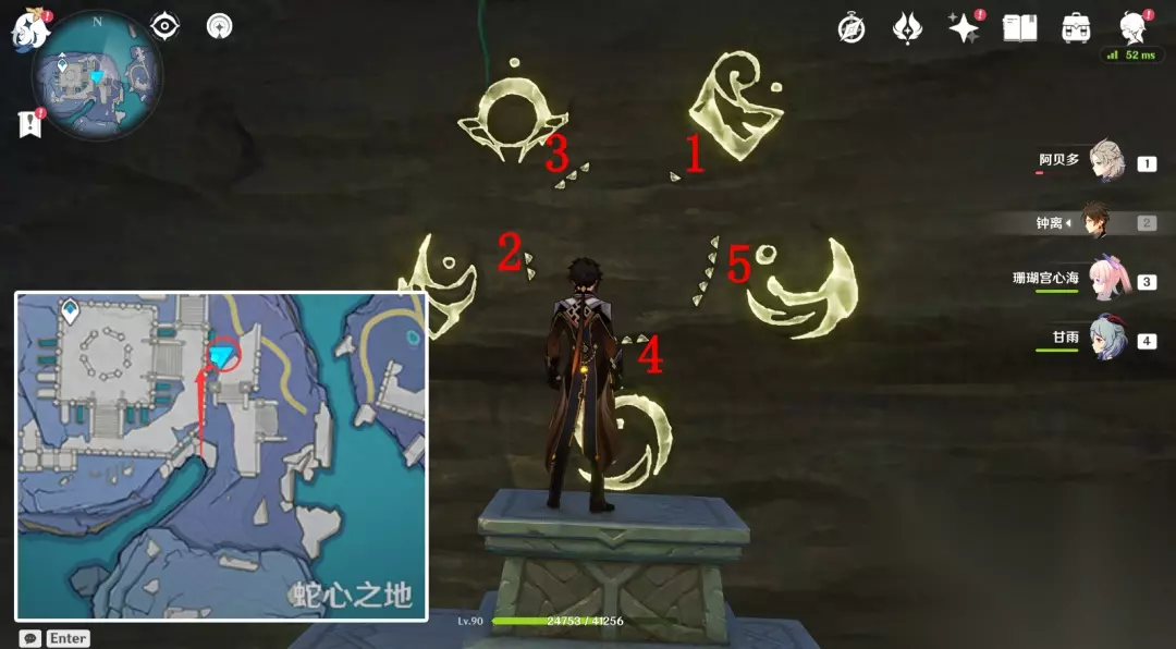 16.回到【蛇心之地】祭坛,按照刚墙壁上键纹亮起来的顺序,触碰对应祭坛蓝色的屏障门,出现三个遗迹守卫,击败后刷出一个华丽的宝箱,全部完成。