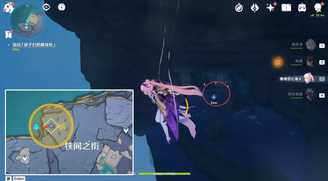 5.前往「孩子们的藏身处」, 需要先设置白夜状态,如下图,在【狭间之街】左边,从左侧悬崖边飞下去,在半山腰位置,即可看到。