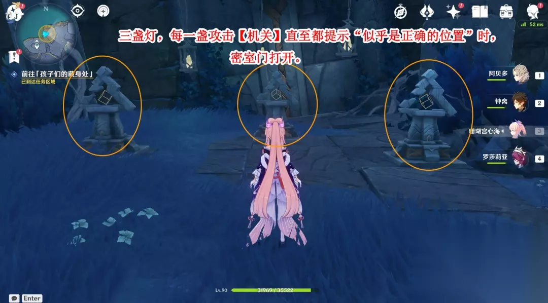 6.来到密室门口处,门口有三盏灯,每一盏攻击【机关】直至都提示“似乎是正确的位置”时,密室门打开,一个一个来攻击,提示“似乎是正确的位置”即可完成,不分顺序前后。