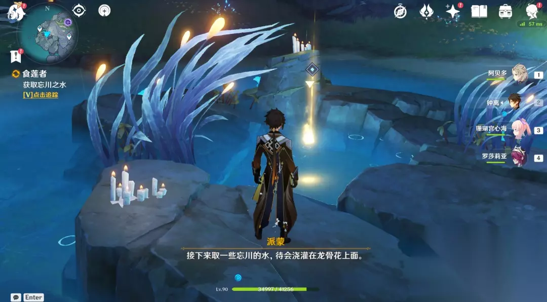 9.前往常夜灵川,获取忘川之水,跟着指引过去,在常夜灵庙左上侧。