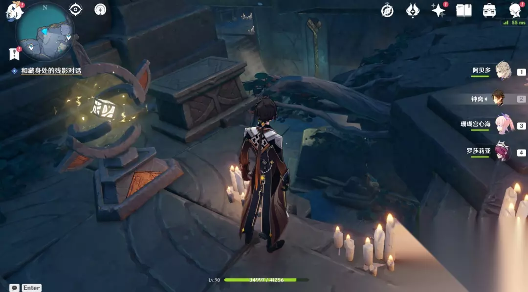 前置要求:冒险阅历达到30级,并完成「白夜国晨昏记,常世入口」, 任务获得:冒险阅历*200,原石*30,大英雄的经验*3,一个珍贵宝箱和一个华丽宝箱 任务流程 1.前往任务触发地,在祭坛下面的山洞里,如下图,在瀑布流水口处进去,这是其中一个入口,另一个入口在传送锚点左边山坡上。