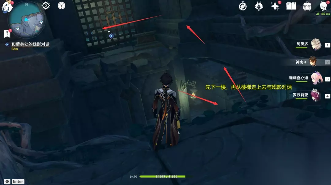 7.和藏身处的残影对话 进入密室,左手边有个小洞,从穿过去,来到这里如下图,先调整日月轮回机关至常夜状态,残影才呈现。