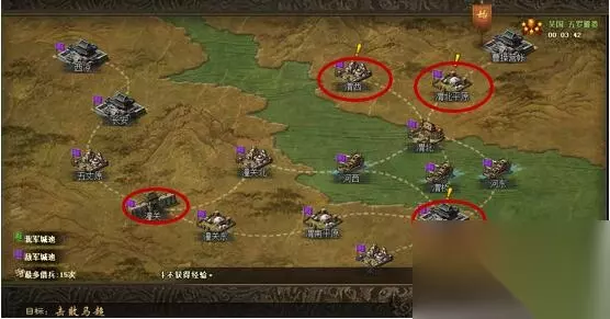 首先简单难度: 速度进入渭北平原突进,留一个将,突进3个渭北,在突进一个河西,然后河西的直接撤退潼关北,这个将最好是穿霸下的典韦,注意看渭北平原打下之后立刻传令,曹操移动到潼关,再移动到潼关北,看马超部队进入潼关,典韦立刻进去刷5个影子,这个时间内,河西,渭北,都应该拿下了,留一个把将把曹操传令到渭北,就行了,然后全部进潼关单挑。简单难度坐等宛城。 攻城掠地 普通难度: 前面老样子,速度进入渭北平原突进,留一个将,突进3 个渭北,在突进一个河西,然后河西的直接撤退潼关北,最好还是霸下典韦。期间不好突进看人数刷影子不要刷太多,够突进就行,留一个将看渭北平原打传令曹操到潼关,到潼关东,然后这个传令的去打下渭西,看马超开始攻打潼关了,点NPC时间离间韩遂,在潼关多2个NPC帮忙,然后典韦进去刷5个影子,在这途中其它2个将同步进行拿下渭桥,渭南,渭南平原,可以2面夹击,多撤退一个将到潼关北,同时攻击,算好影子时间,全部进去潼关单挑,把曹操移动渭南就行了,坐等过关。 困难,地狱,战神难度: 简单的说这3个难度跟普通差不多了,路线也是一模一样。这里唯一不同的是,在曹操移动到潼关之后,而且潼关东不在是你的地盘,需要攻打了。典韦要进五丈原,看情况刷3,4个影子抵挡住马超,刷完操作快的话,典韦是能撤退出来的。太史慈呢,是要同步跟典韦一起突进撤退过来,攻打潼关东,所以你的典韦+ 影子要能够抵挡到太史慈将潼关东打下,曹操移动到潼关东,相关交火地区的NPC人数增多就要看人头多刷几个影子,事件NPC增多,至于事件,只拿渭西的离间事件就行了。其它事件打了是浪费时间,不加时间,也没什么效果。在太史攻打潼关东,典韦抵挡五丈原的时候,魏延,黄忠攻打另外一路,打通渭南,期间注意,在潼关东拿下立刻把曹操移动到潼关东。等马超灭了你的影子攻打潼关时候,典韦进去刷5,6影子,同时再过去让离间事件发生.典韦单挑,其它打通路线,移动曹操到渭南,单挑完潼关的马超部将,坐等结束。