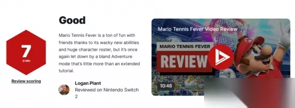 今日,任天堂Switch2独占大作《马里奥网球:狂热》媒体评分现已正式解禁,IGN为其打出7分的成绩。