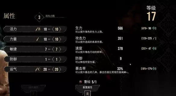 加点2:全活力+运 1、也可选择全活力和运气,最高难度的话可以提升很大的生存能力; 2、运气能提高玩家的暴击率,后期运气高了很容易打出9999的伤害。