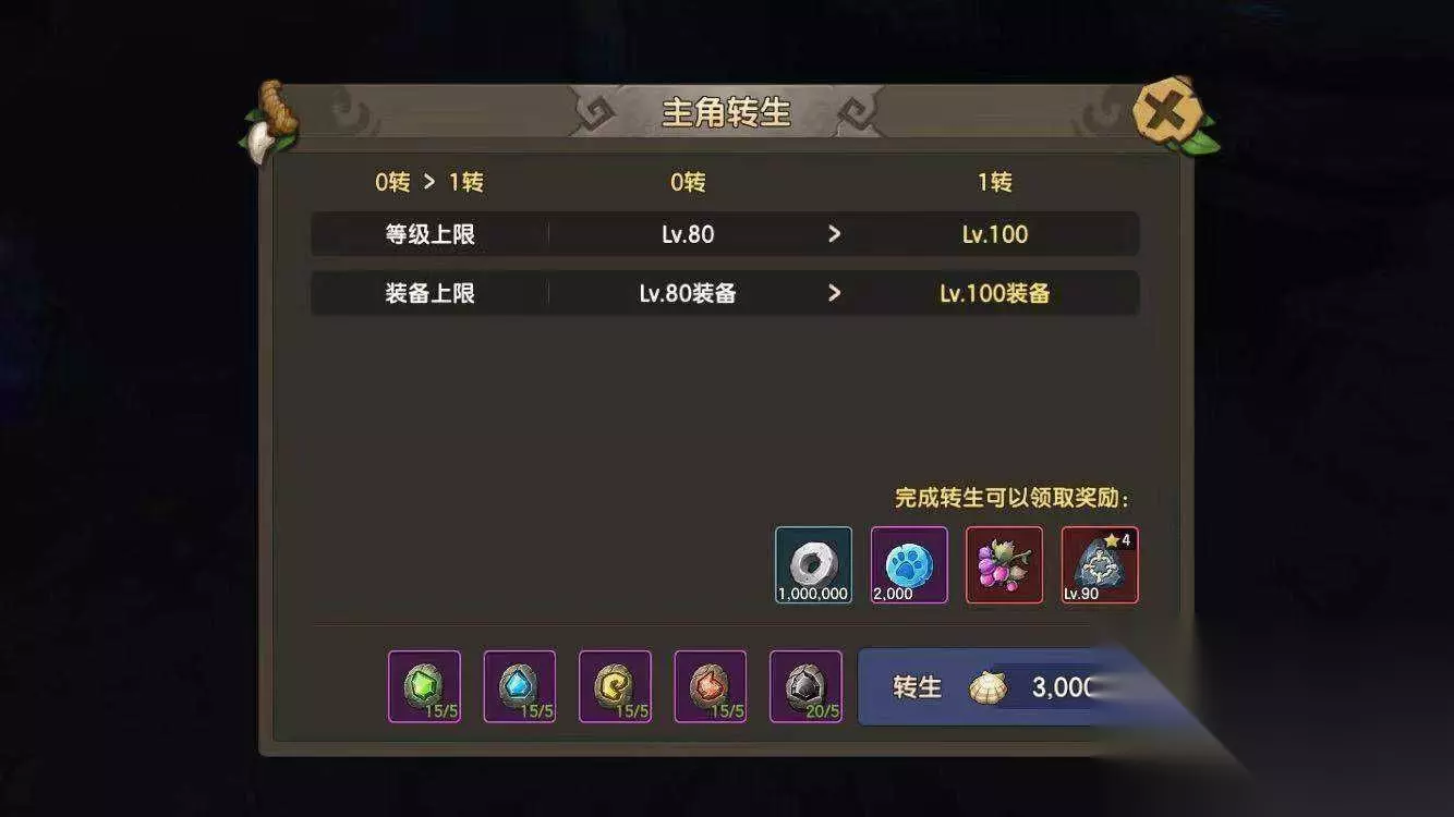 6、然后玩家需要点击角色转生图标,然后进入转生界面,消耗资源。此时点击确认即可开始轮回。
