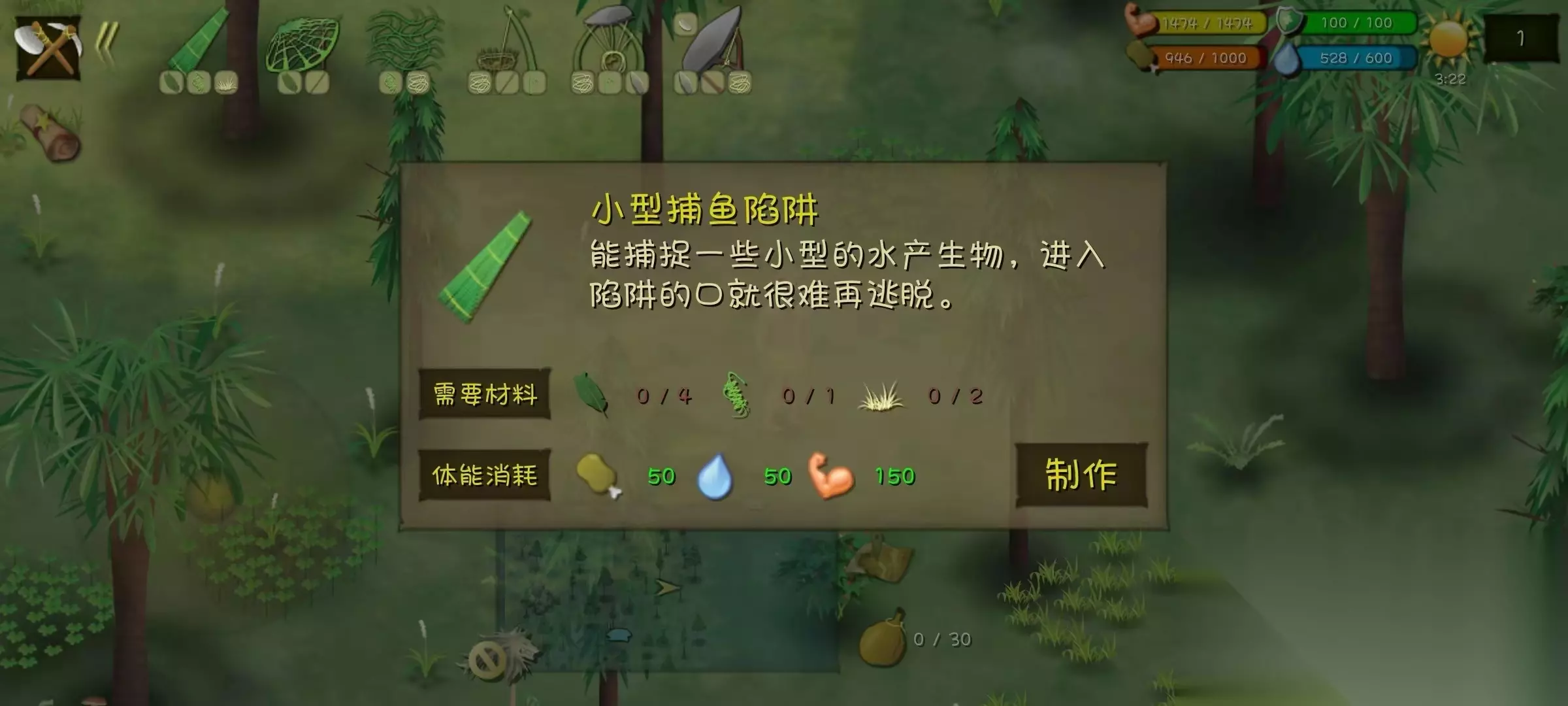 大渔网和小型捕鱼陷阱 这个地图四面环海,海中有非常多的资源。大渔网可以放在海里,抓鲈鱼乌贼等大型鱼类,小型捕鱼陷阱可以放在海边抓一些小型的海虾、螃蟹等。