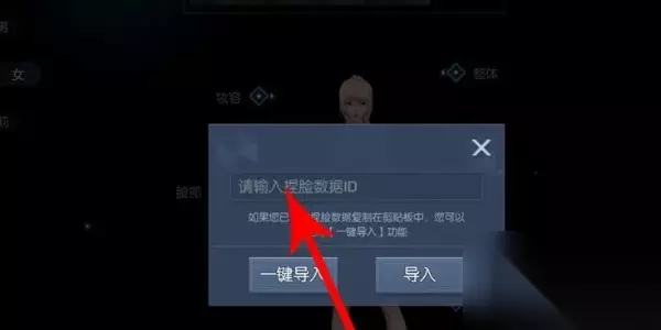 3、打开捏脸数据ID导入对话框后点击编辑框,然后输入捏脸数据ID。