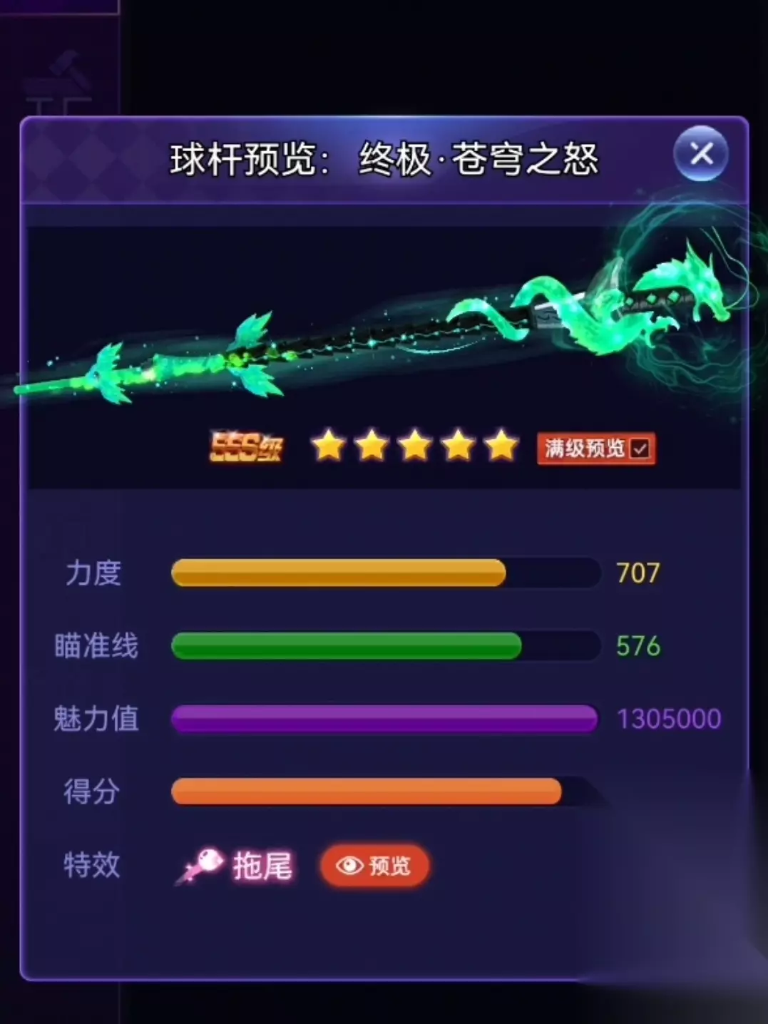 3️⃣苍穹之怒 球杆类型:经典款 满级属性: 力度707,瞄准576,魅力1305000 获取途径:累充好礼