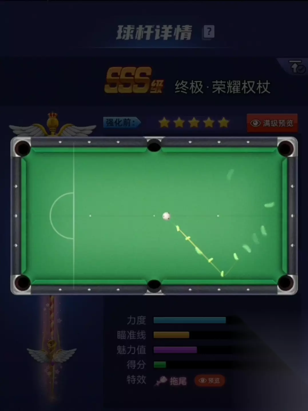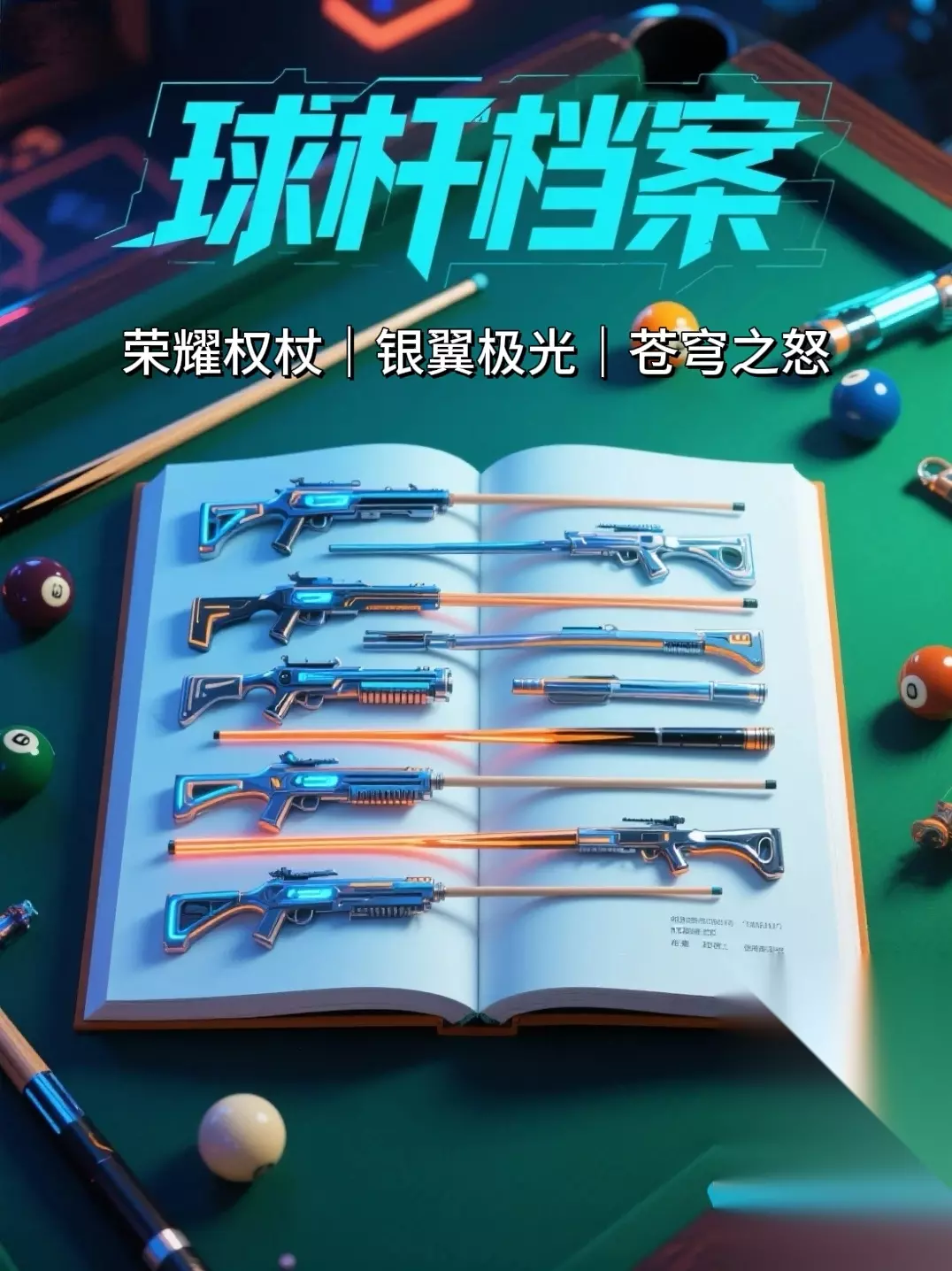 天天台球球杆档案:荣耀权杖|银翼极光|苍穹之怒如下: 【装备图鉴】