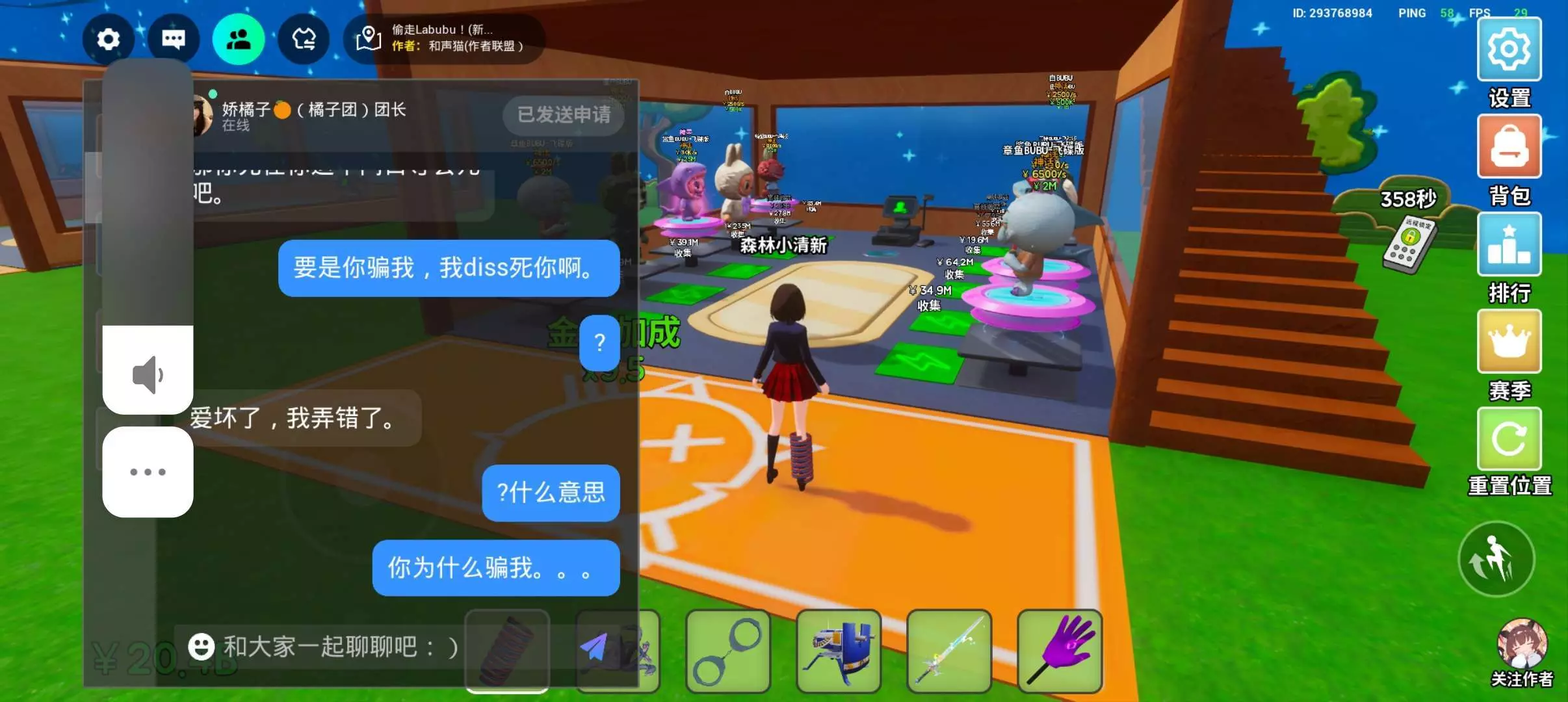 大家小心点,这个我的好友。想用两个多拉换我云朵,结果扔给我黄金螃蟹和一个章鱼就跑了,大家小心点这个人