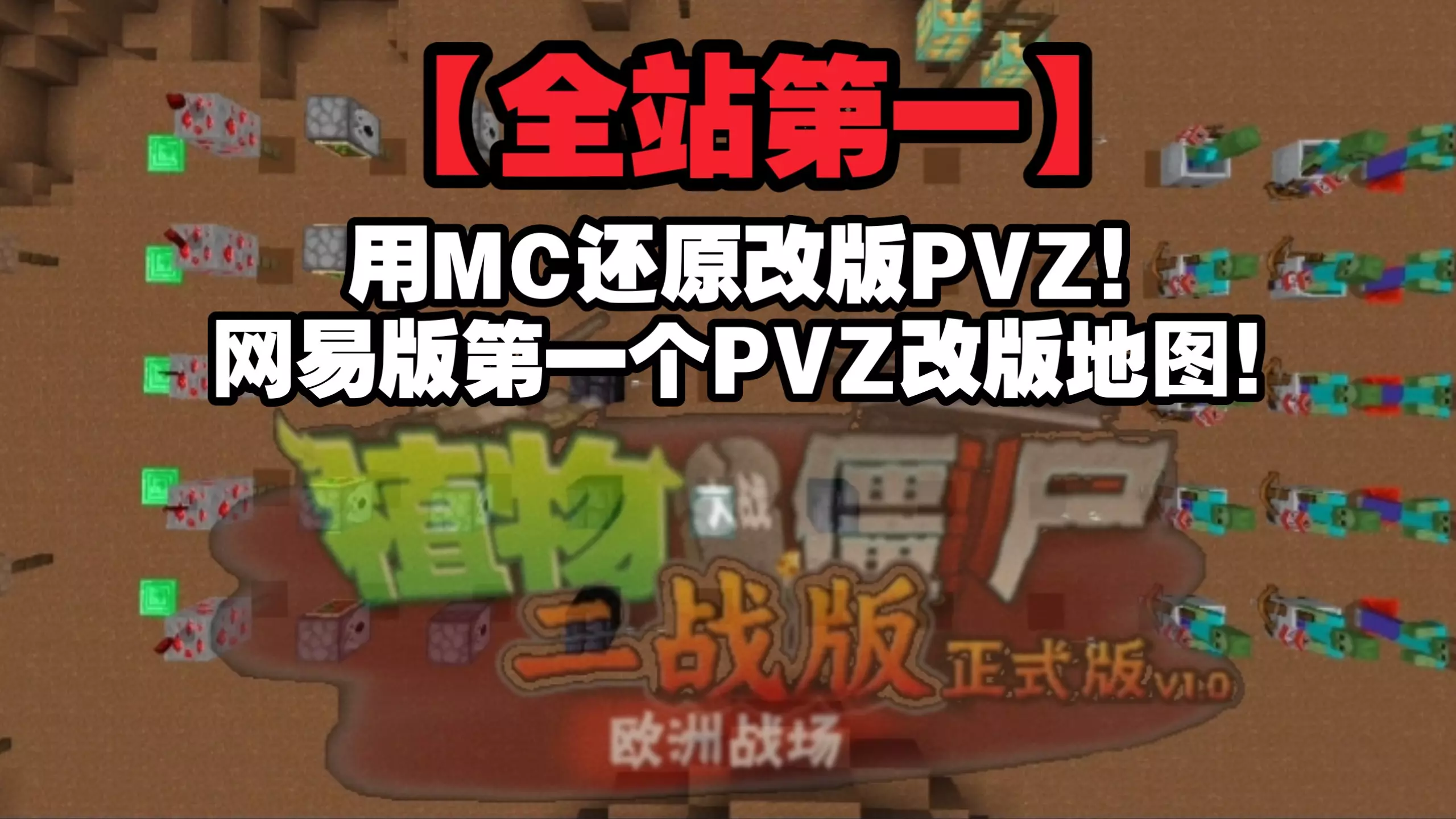 沙盒游戏 【全站第一】用MC还原改版PVZ!网易版第一个PVZ改版地图![植物大战僵尸二战版]