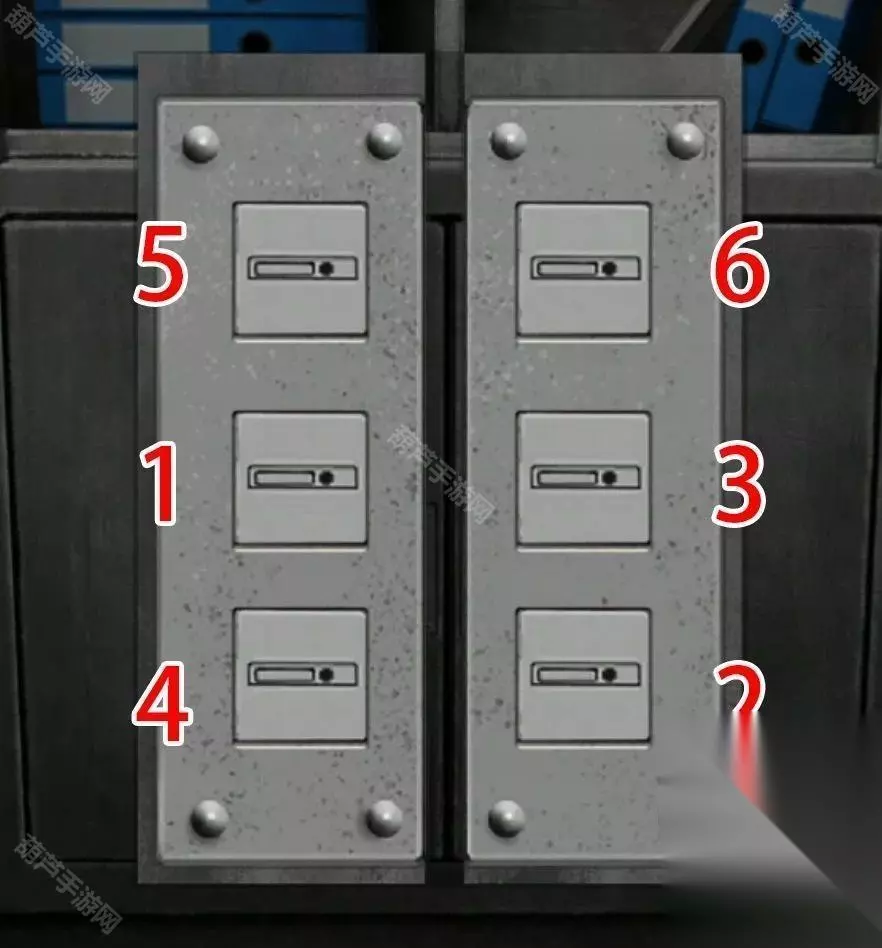 记好顺序后退一下点击柜子下半部分,按照左中-右下-右中-左下-左上-右上的顺序依次点击文件夹形状密码锁,打开后拿到打印纸,上面还有一本笔记本,这里面的神女是不是梦幻联动了啊?不管他往后翻,第三页有一张线索图。