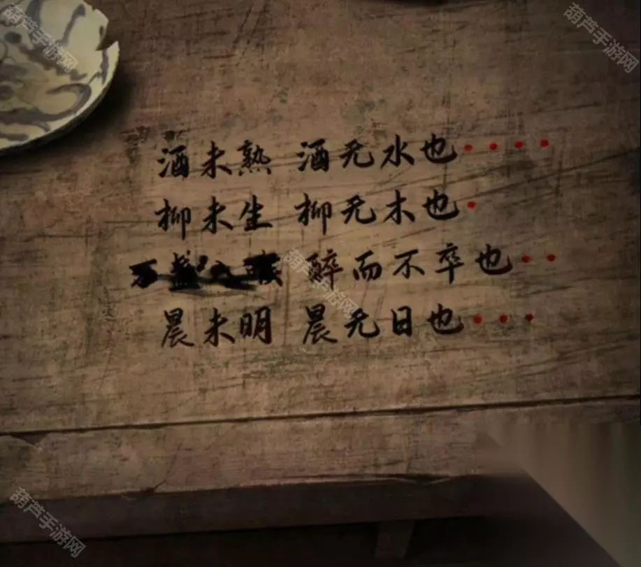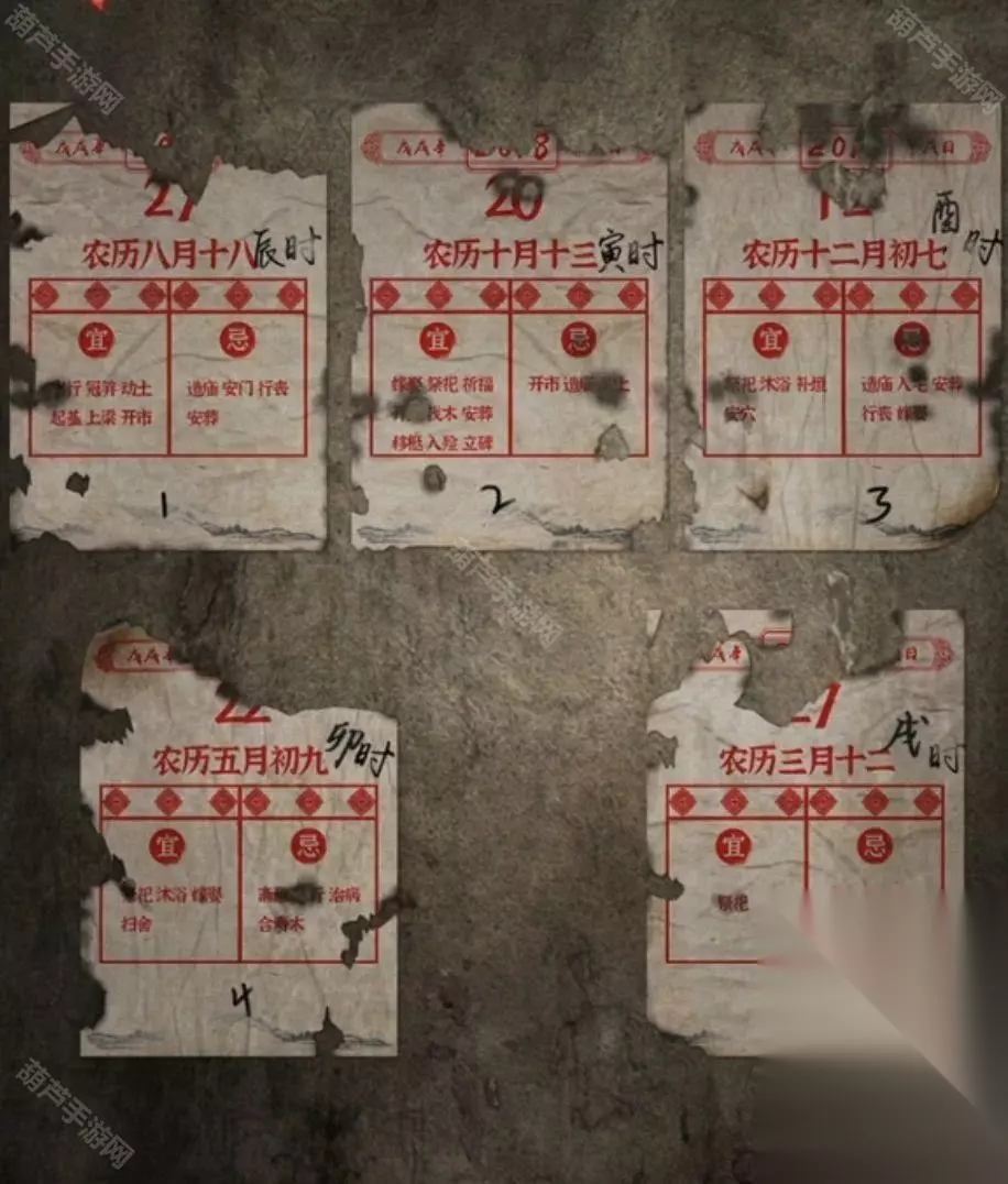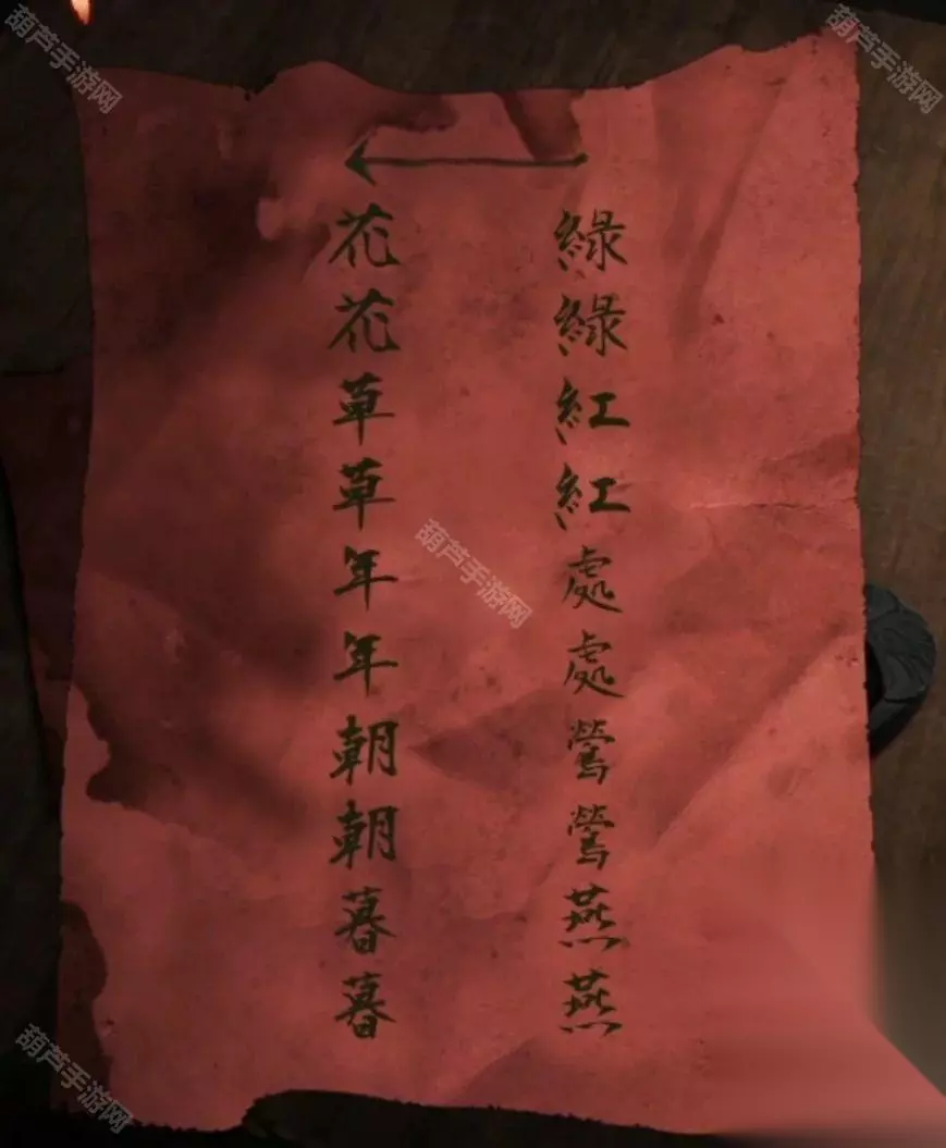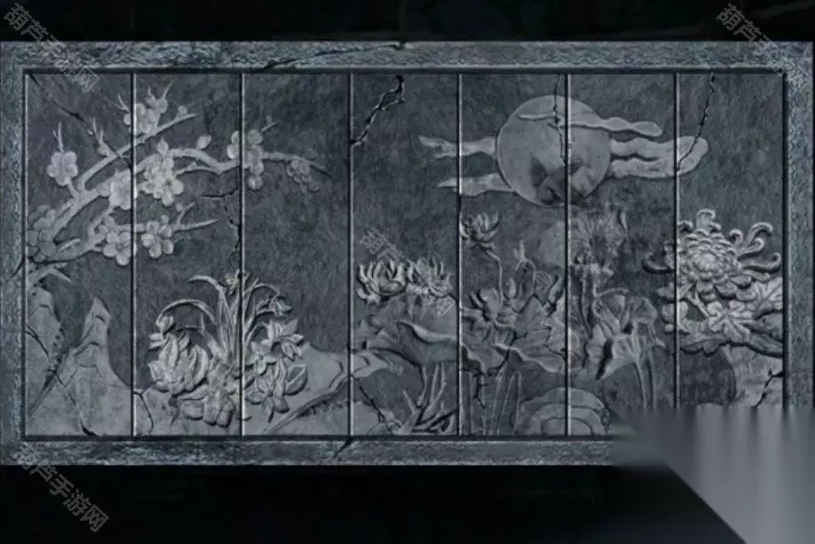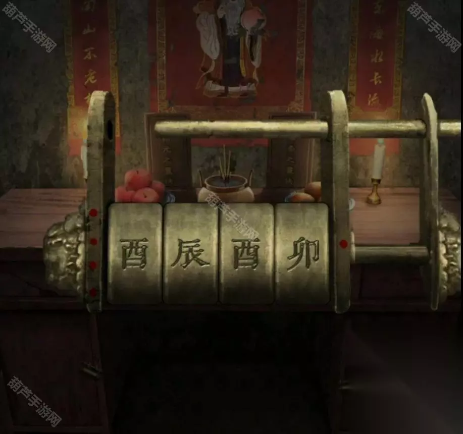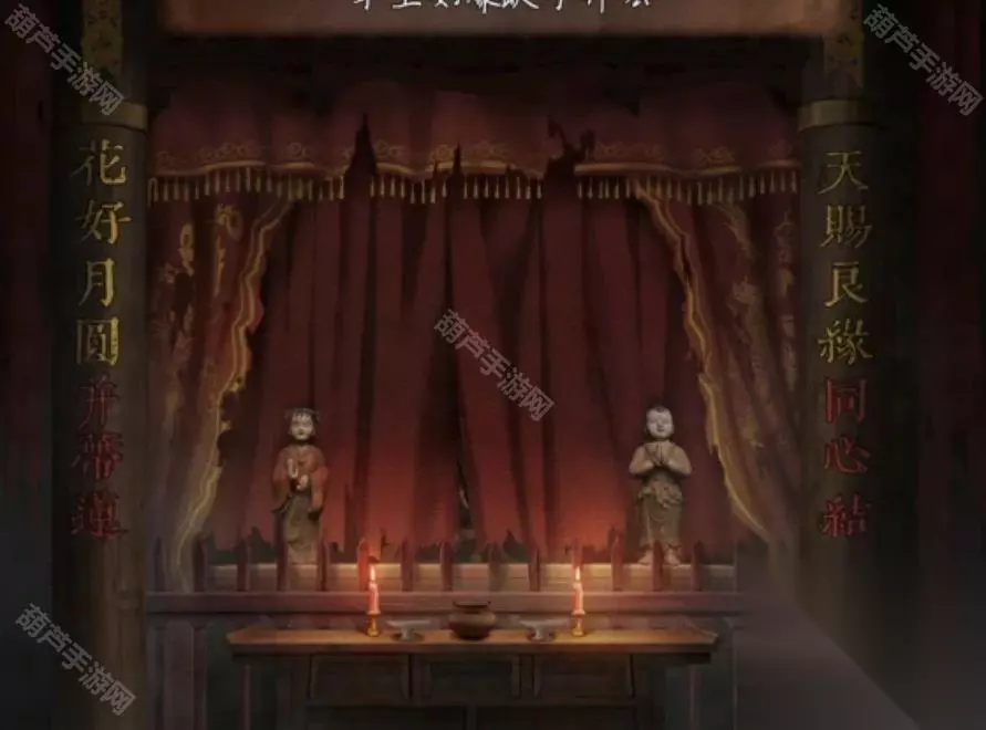 广播的内容就是线索,记下来红字48613这就是数字密码了,回到客厅查看右下角地上的密码箱,五位数字密码没错了,调整为48613后打开箱子拿到圆形镜子,查看左边的小锁后就看到纸条了,不过纸条上的提示没什么用因为我们乐器旁边有文字了。 回到卧室将圆镜子放在大镜子上触发剧情,剧情后镜子上出现文字,正对应上了之前的线索,既然是从左下角数,先蓝色再红色,那么上面48对应的字是槐,左边13对应的字是愁,下面73对应的字是眠,右边55所对应的字是思,记下来字和对应位置哦。 对墙上的年画娃娃使用鱼的画,之后年画自己脱落露出下面的机关,查看一下注意到是文字,我们现在获得的文字线索就是镜子上的了,上面的文字是槐,也就是木和鬼,正好也是左右结构;下面的文字是眠,拆分成目和民;左边的文字是愁,拆分成上下结构就是秋和心;右边的文字是思,拆分成上下结构是田和心,调整一下打开机关。 打开的机关内有个凹槽,使用那一半玉佩后就能自动放入男主身上的一半,看剧情本章结束啦~可惜没有,剧情过后拿到一个石像头,出门来到地窖口发现地窖门开了,这里没有任何提示哦!进入地窖后查看一下被小老鼠来回跑的红薯拿到一根棺材钉,对后面小神龛使用棺材钉露出无头神像,使用石像头后拿到一张线索纸。 看这个圆柱形的东西很眼熟,回到水缸查看一下水缸上面出现了文字,考虑到线索纸条上的文字没有重复且连续,优先考虑是顺序,那么按照数字顺序我们就可以获得密码边闷盍磨边闷平,也不用换地方就在水缸旁边演奏一下拿到一块幡。 剧情过后再次来到地窖,对左边墙上画门的左上角使用棺材钉,然后使用幡就出现了石门,进入石门后本章结束 第四章图文攻略 在地上捡起掉下的灯笼放到墙面的壁灯上,观察光通过灯笼投射在墙面上的投影小人指的八门,小人旁边的光点代表顺序,得到八门按压的线索。八门按下顺序为:伤惊死生开休。