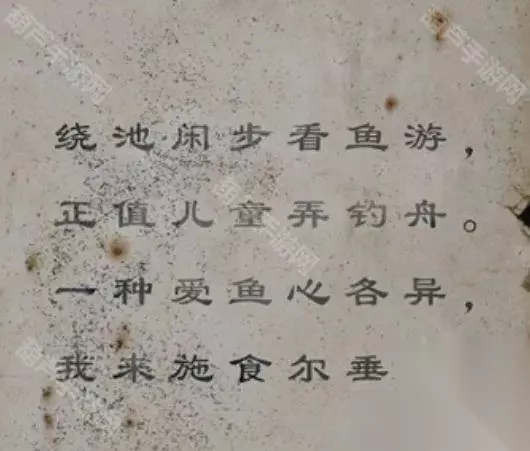 出门左转穿过农田到地窖门口,对旁边的机关使用布老虎后获得一只石头乌龟,回到院子对空水缸使用石头乌龟后水缸自动满水,对水缸旁边的湿泥巴使用铁铲获得泥巴,对水缸使用柚子叶后使用脸盆获得柚子水,回到卧室后对地面使用柚子水终于去除污渍,记下来五条鱼的方向依次是→↙↖↓↘,记好后注意右上角的鱼很特别,对鱼使用白纸和炭笔后玩个小游戏获得鱼的画,玩个很简单的一笔画小游戏,不知道是不是为了怼某游戏提示从单数开始画,直接用了个全是双数的图案哈哈哈哈,米雪就喜欢阴阳锅制作组的叛逆。 先出门到院子调整一下右侧鱼磨盘上小鱼朝向,有提示是从左到右的,调整为→↙↖↓↘后机关打开拿到一把钥匙,提示泥人抱着什么,看来是要捏个泥塑啦。拿着钥匙来到厨房,查看右侧需要钥匙打开的盒子,打开后看到两个模具,将泥巴放进左边的小模具中玩个小游戏获得泥娃娃,不过阴阳锅的游戏稍微有些反人类了,不喜欢的小伙伴建议跳过吧。 出门将泥娃娃放进机关下面的泥人怀里,泥人裂开了,拿到鱼石头,回到厨房查看左边的机关,将两块鱼石头和字块都放上去后就可以开始游戏了,这个机关其实就是把纸条上的诗词按照纸条顺序给走一遍,注意鱼石头代表着一个鱼字,不过字是隐藏的最好是记一下顺序,当然直接抄答案也可以~走法如下。