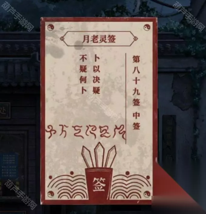 查看前面的桌子,玩小游戏抽签,这个小游戏后面很拼脸!实在停不好就跳过,完成小游戏后获得一根竹签,出门左转到小亭子,结果纸人就站在小亭子前面,查看纸人使用符咒后使用八卦镜烧掉纸人,之后在小亭子的窗口使用竹签获得解签卡,剧情后查看一下解签卡,发现上面有熟悉的鬼画符。