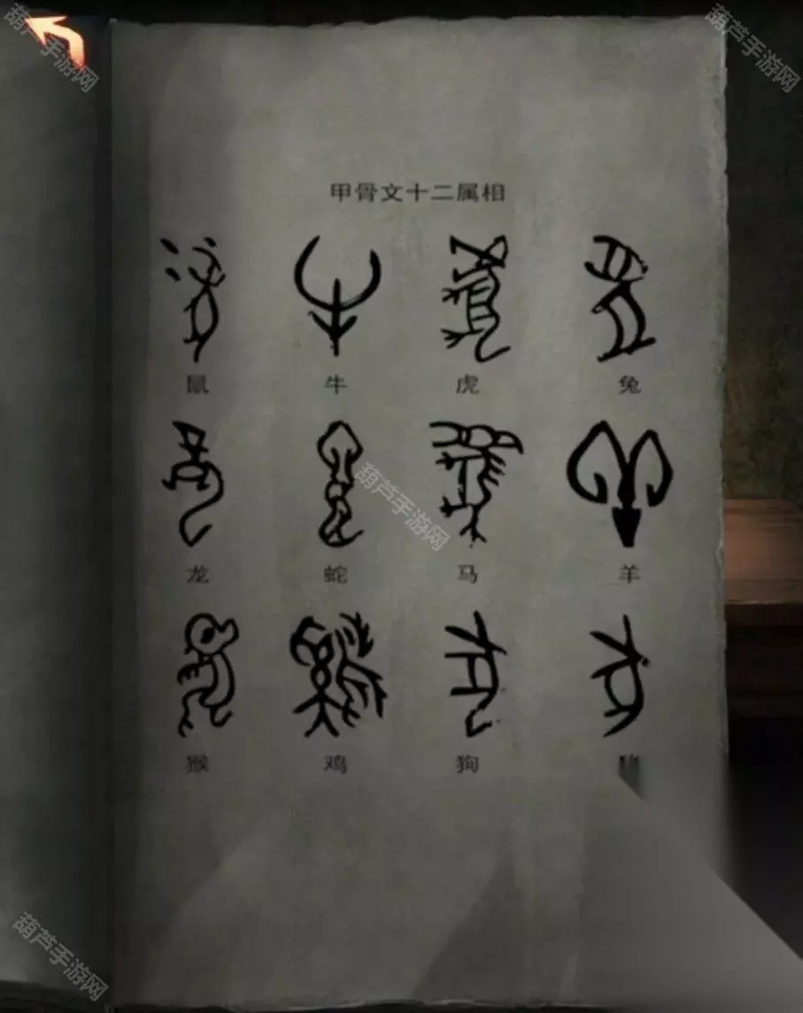 然后再推理一下上面西对应的是申酉也就是猴和鸡,右边北对应的是亥子也就是猪和鼠,下边东对应的是寅卯也就是虎和兔,左边南对应的是巳午也就是蛇和马,其他几个属相龙狗牛羊肯定就是中间的了,然后再查看一下笔记本第二页,相对应的鬼画符就能找到啦。