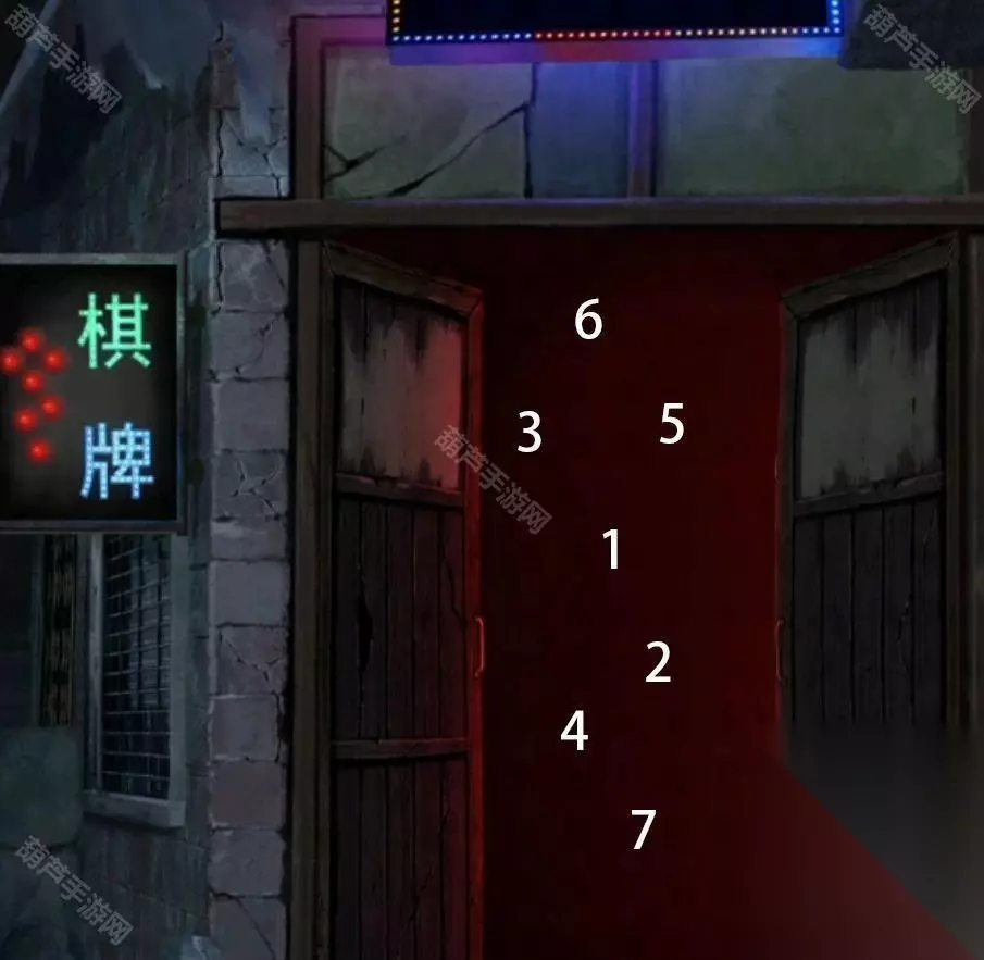麻将馆场景拿走左边地上的小葱,右边桌子上拿走打火机,注意小面价目表,后续肯定能用的,现在线索不全先放过,右边最近的门是小面的门,需要求和,但还是线索不足,毕竟不能所有都加起来这么简单,小路旁边有个麻将馆,点一下靠近发现麻将馆招牌上红灯是按顺序亮起的,记下来顺序。
