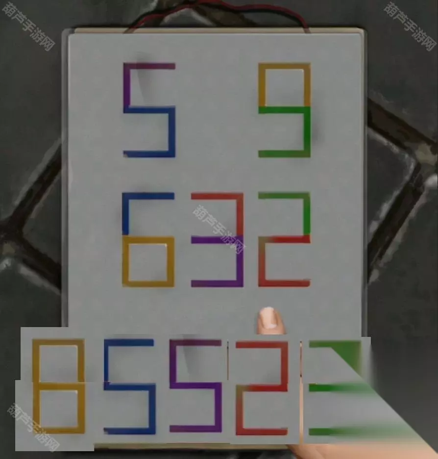 查看日历的时候使用镂空卡片,发现几个数字都有了图案,我们前面有个锁需要黄蓝紫红绿五个颜色,那么组合一下,黄色部分组合起来是8,蓝色部分组合起来是5,紫色部分组合起来是5,红色部分组合起来是2,绿色部分组合起来是3,所以获得密码85523.