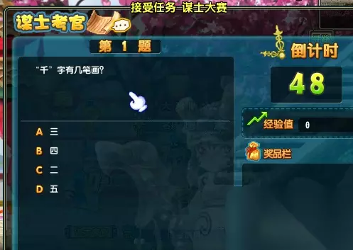 领取任务后再次对话进入答题界面开始答题。