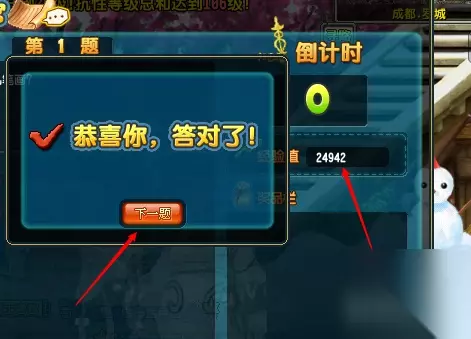 每答对一道题都可以在右侧的面板上看到累积的经验奖励,点击下一题继续答题。