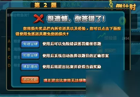 如果当前题目答错了,可以在面板中选择不同的选项,但是需要有对应的道具。